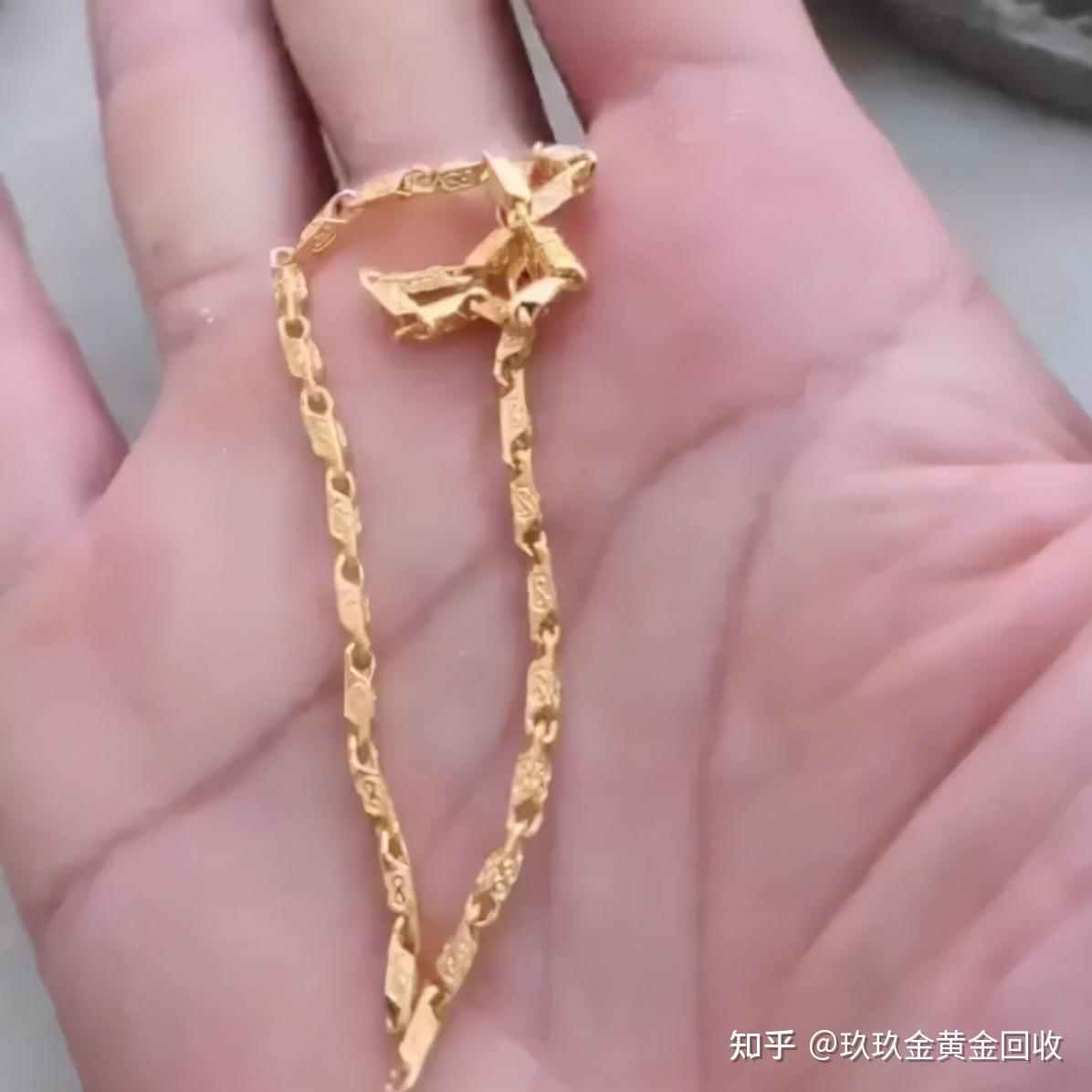 原来女子的这款金项链确实是老款项链,之前在工厂上班的老公花半年工资买的,自己一戴就是二十多年了,一直没有舍得取下来过,眼瞅着最近这几年黄金在涨价,一直说要准备换款式,因为上班忙也没有脱开过身,正好今天临时有事急用钱才舍得要卖掉。